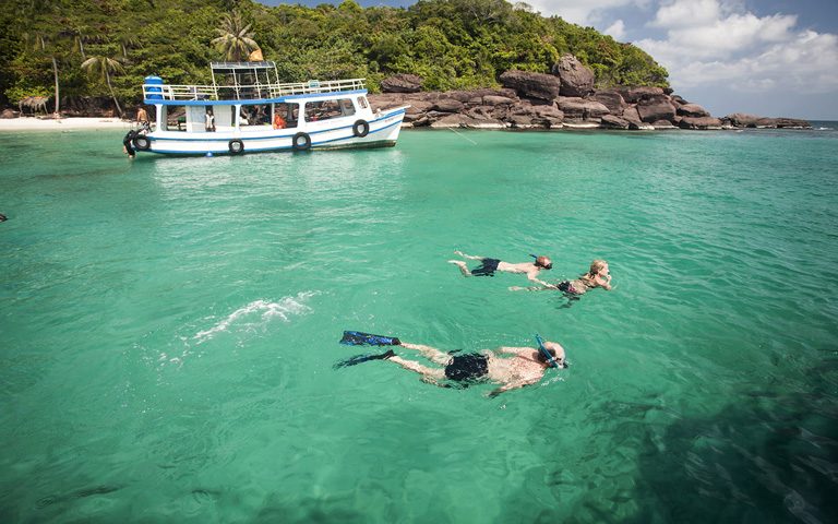 Đến với tour du lịch Phú Quốc Quý khách thỏa sức vẫy vùng trong làn nước xanh trong vắt, cùng dạo bước trên những bãi cát mịn màng lưu lại dấu chân. Thật thiếu sót khi đến Phú Quốc mà bỏ qua hoạt động câu cá ngắm san hô, chiêm ngưỡng thế giới phong phú đầy sắc màu dưới đáy đại dương.